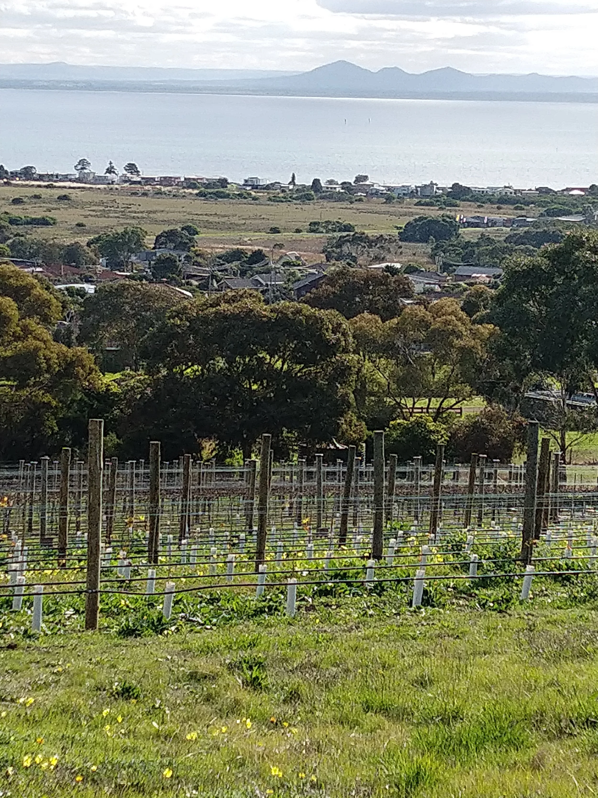 The vineyard is overlooking Port Phillip Bay, You Yangs, Melbourne & Geelong City skyline.